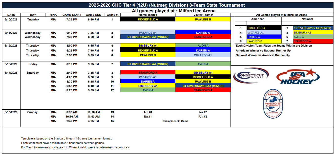 12U Nutmeg CHC Tourney Scores & Standings (3/10 - 3/15)